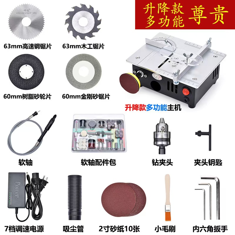 7分鐘前震撼來襲【Holt】日本Super Viva 展會特賣 微型多功能臺鋸PCB小型桌面切割機 - 微型多功能臺鋸臺鋸T30標配(6配件)
