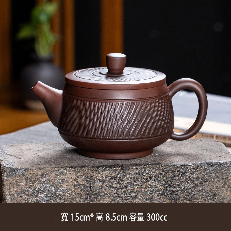 7分鐘前經典傳承・匠心打造|【大師純手工紫陶鳳鳴壺】復古跳刀紋漢瓦壺(一壺兩杯)・黃金大容量300cc + 球孔過濾,鳴音設計顯格調 - 紫陶漢瓦壺【單壺】