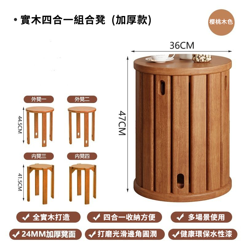 半小時前全實木可疊放凳 升級6入組|多功能茶几椅子 二合一設計 MIT台灣製造|茶几+椅子一次搞定 - 【4合1】免安裝-全實木加厚-可疊放【兩大+兩小】---NT$3960