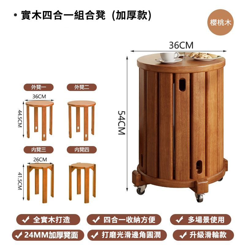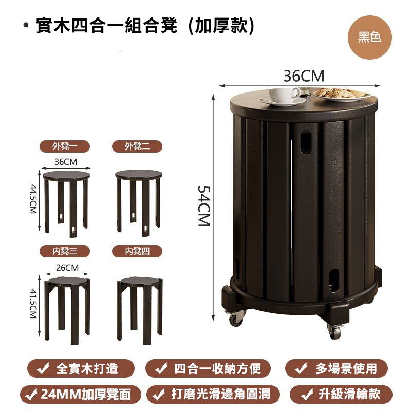 15分鐘前全實木可疊放凳 升級6入組|多功能茶几椅子 二合一設計 MIT台灣製造|茶几+椅子一次搞定 - 【4合1】免安裝-全實木加厚-可疊放【兩大+兩小】底托+萬向輪---NT$4760