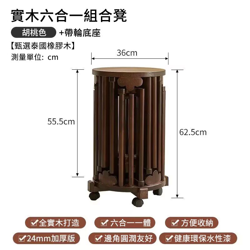 半小時前全實木可疊放凳 升級6入組|多功能茶几椅子 二合一設計 MIT台灣製造|茶几+椅子一次搞定 - 【6合1】全實木加厚-可疊放【兩大+四小】底托+萬向輪---NT$6260