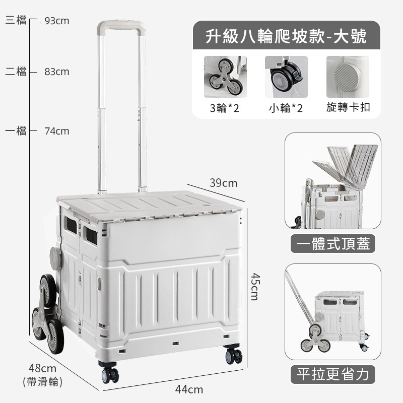 半小時前【折疊購物車】買菜購物免提重,爬樓搬運超省力!大容量好收納,露營野餐隨拉隨走,居家外出都好用! - 【八輪爬坡款(大號)】 加厚帶蓋 灰色 NT$2390