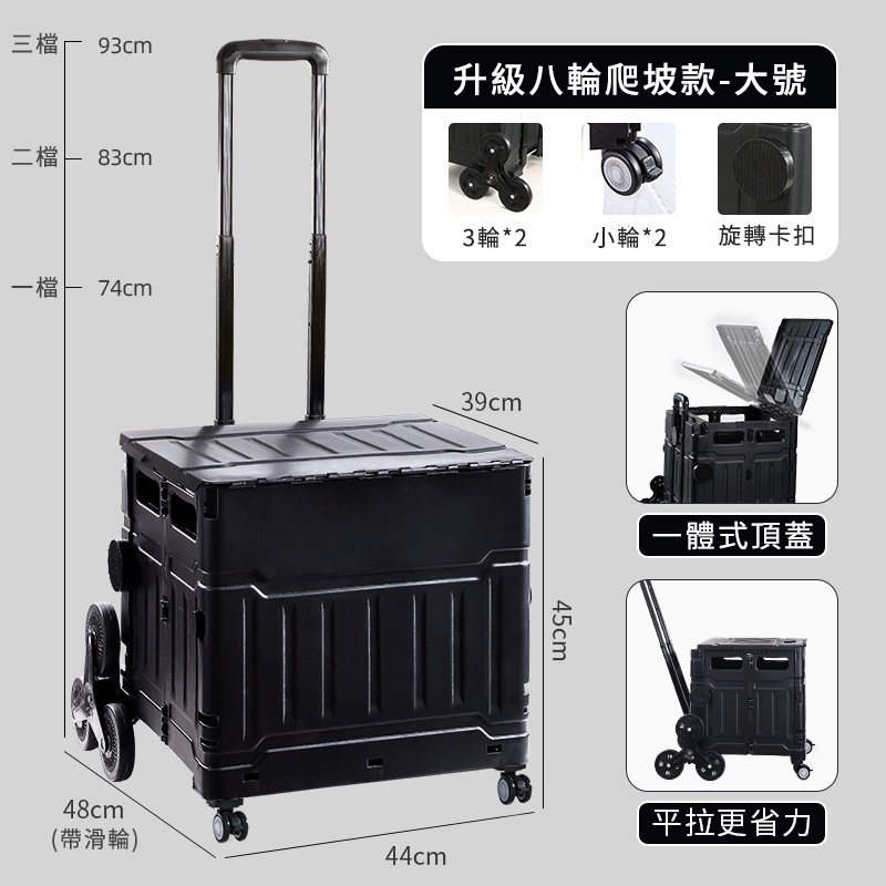 15分鐘前【折疊購物車】買菜購物免提重,爬樓搬運超省力!大容量好收納,露營野餐隨拉隨走,居家外出都好用! - 【八輪爬坡款(大號)】 加厚帶蓋 黑色 NT$2390