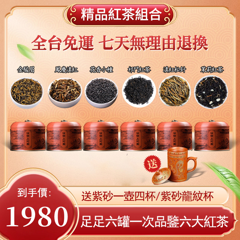 4分鐘前【蛇年到,禮真到】一次品嚐六大濃香型紅茶組合送精美[紫砂龍紋杯紫砂+紫砂一壺四杯+清明上河圖紫砂茶葉罐6個] - 六大紅茶+浮雕龍紋杯+清明上河圖紫砂茶葉罐6個---NT$1980
