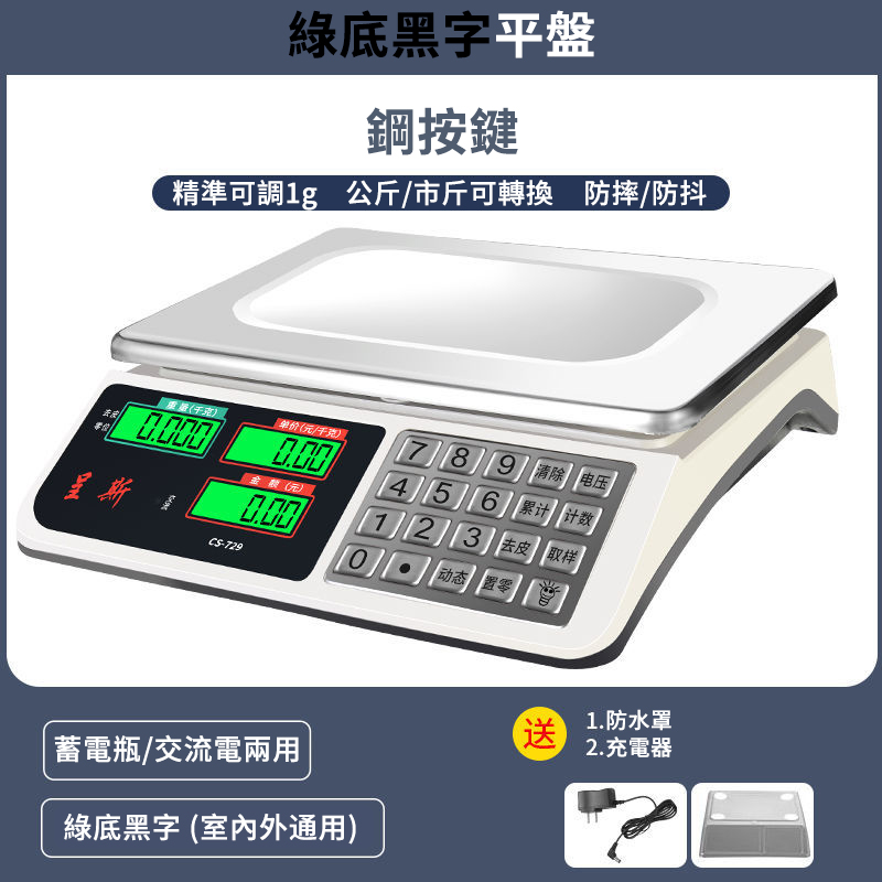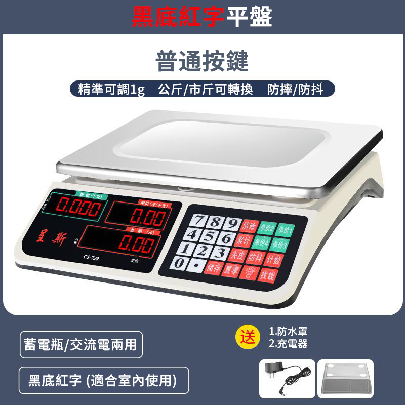 半小時前工廠聯合促銷!僅需千元【台灣省電待機王】德國進口商用電子秤 加厚加固超耐用 精準顯示為生意保駕護航 - 商用款(分度值可達1克)紅字+大平盤