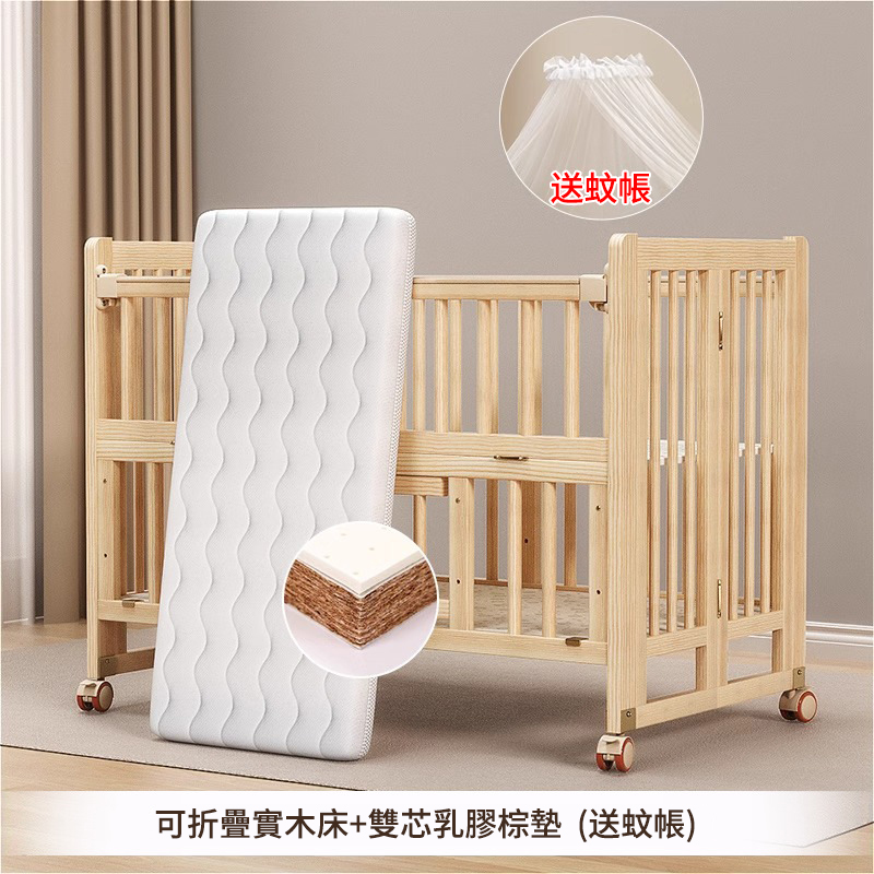 4分鐘前陪伴寶寶成長,永不閒置【嬰兒床-->遊戲床-->書桌】日本超火の可折疊嬰兒床,實木無漆更安心,可拼接大床+滑輪移動,多功能設計陪寶寶成長! - 【103*61*85cm】折疊小床+五件套+棕墊+蚊帳