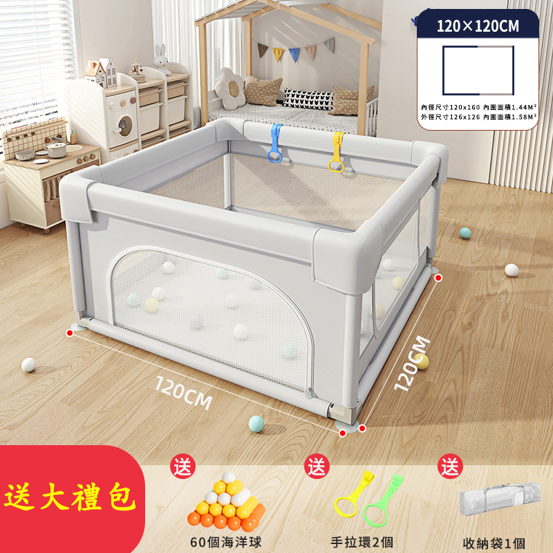 半小時前爸媽社團一致好評!寶寶玩得安心,爸媽終於能喝口熱咖啡【全台熱銷】可移動嬰兒遊戲圍欄!安全防護+防撞設計+輕鬆收納!,室內安全必備! - 120 X 120公分 +小球框+大禮包