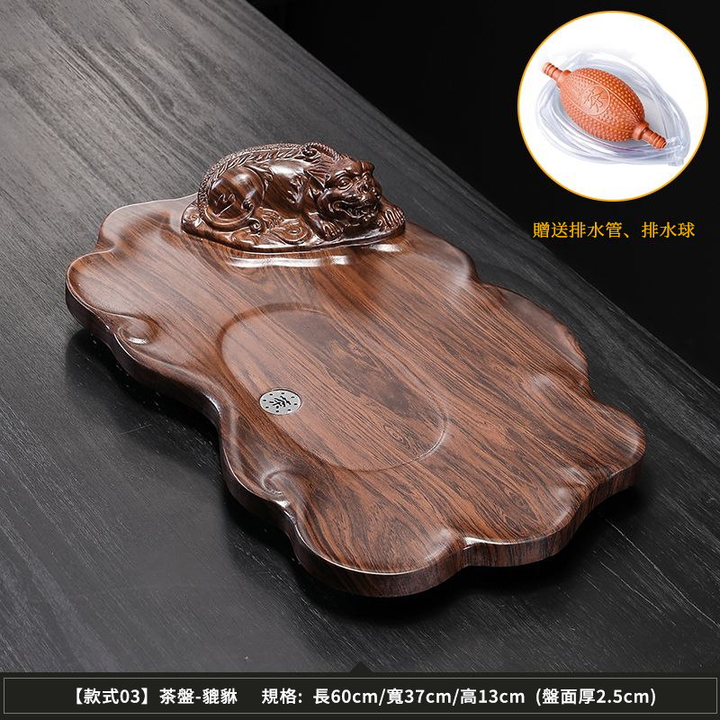 2分鐘前【天然實木】黑檀木雕刻功夫茶盤組|中式茶具套裝|實木泡茶盤 擺設收藏兩用 - 吉祥茶盤60*30cm【送排水管】