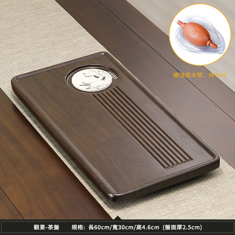 15分鐘前【天然實木】黑檀木雕刻功夫茶盤組|中式茶具套裝|實木泡茶盤 擺設收藏兩用 - 觀景茶盤60*30cm【送排水管】